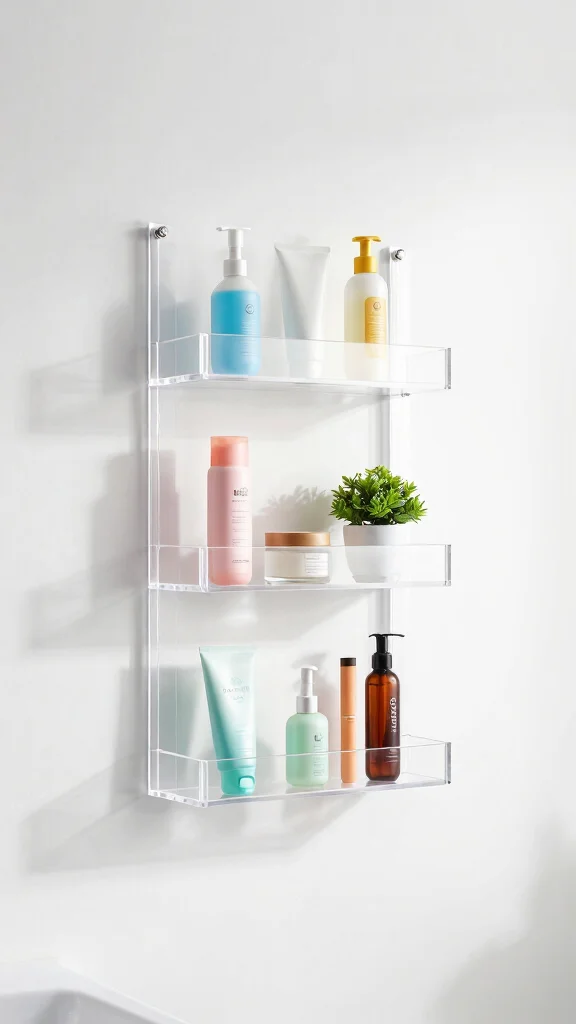 Fun fact: acrylic shelves can visually enlarge a small bathroom by up to 30%, thanks to their transparency. Pair them with pops of color for bold contrast while keeping a clean, minimal vibe—perfect for style bathroom shelves you’ll actually maintain.