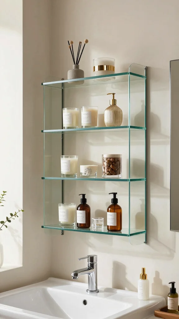 Glass shelves can elevate simple storage into an eye-catching display, enhancing your bathroom decor significantly.
