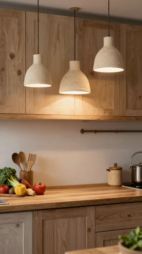 If you’re looking to make a statement, recycled glass pendant lights can add a unique charm to your kitchen. These eco-friendly fixtures not only shine beautifully but also reflect your commitment to sustainability. Hanging them above your countertop or island not only provides essential light but also creates an artistic focal point that draws the eye. The soft, refracted light through the glass adds warmth and character to your cooking space.