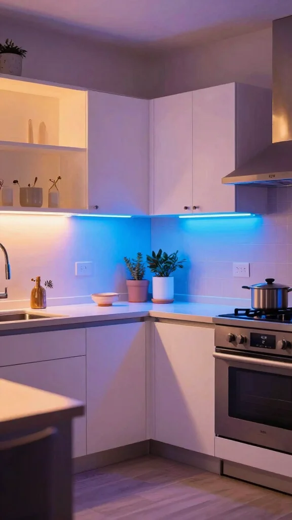 – Pair LED strips with under-shelf cabinets for indirect lighting