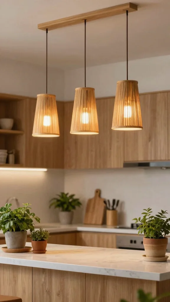Bamboo lighting fixtures effortlessly bring a touch of nature into your kitchen, adding warmth and character. As a highly renewable resource, bamboo is an eco-friendly choice that can enhance your decor while being kind to the planet. Available in various styles, from minimalist to elaborate, these fixtures provide a soft, diffused light that creates an inviting atmosphere.