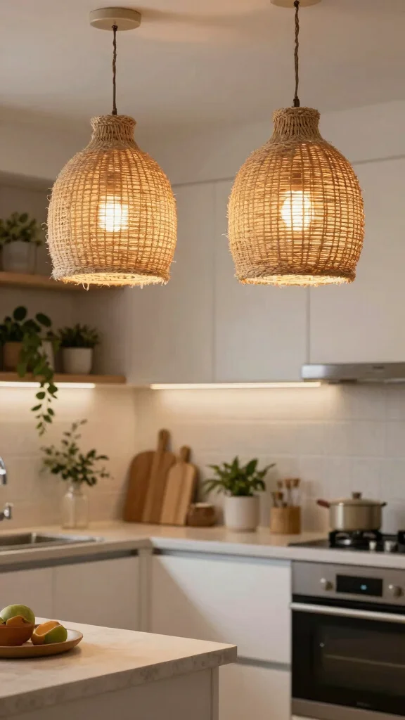 Natural fiber lighting options enrich your kitchen with organic textures and warmth. Fixtures made from materials like jute, rattan, or hemp lend a bohemian charm to your space while offering eco-friendly illumination. These lights can beautifully complement kitchens that embrace natural or rustic decor, creating a cozy atmosphere.