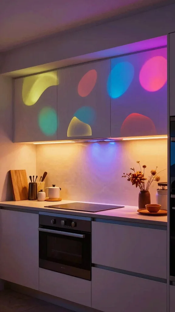 Color-changing LED lights are perfect for setting the mood in your kitchen. Whether hosting a dinner party or enjoying a quiet family meal, adjusting the hue to match the occasion can enhance the dining experience. These energy-efficient lights come with smart controls for easy customization, allowing you to create an atmosphere that suits your needs.