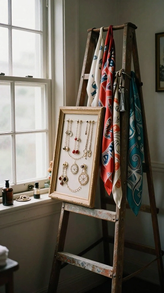 – Hang a vintage scarf or necklace gracefully for added flair.