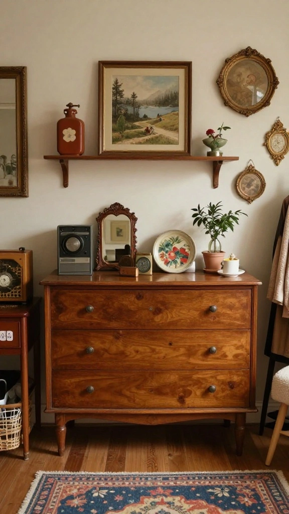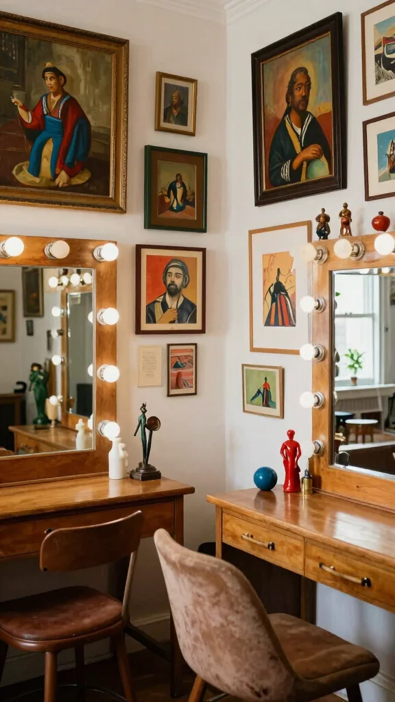 Art can breathe life and character into your vintage dressing room! Curate eclectic displays that reflect your interests and passions, mixing various styles like paintings, prints, and sculptures for a gallery-like feel. Incorporating vintage frames for modern art can create an intriguing contrast.