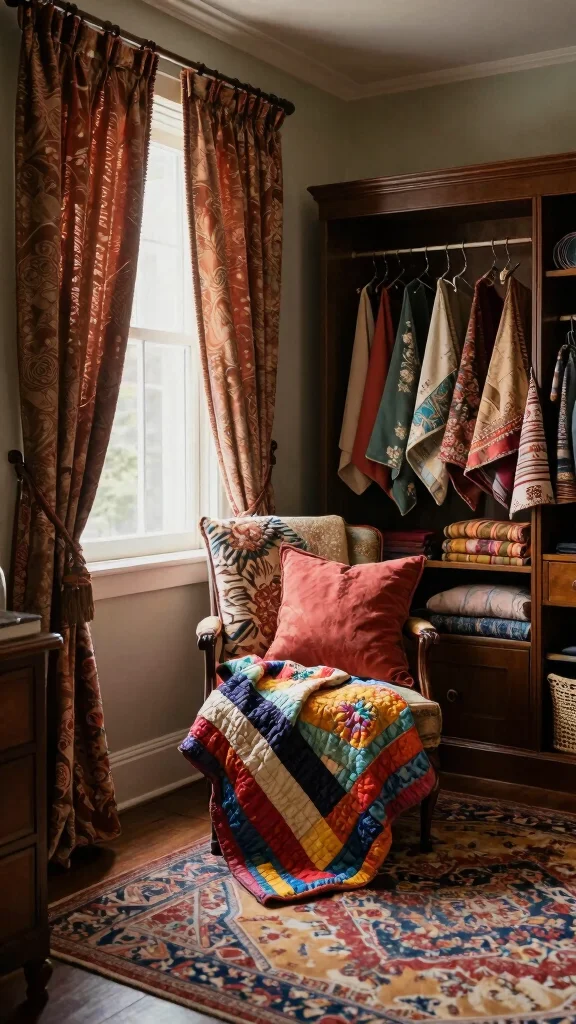 Vintage textiles, often found at estate sales or thrift shops, can beautifully enhance your space, adding character and a personal touch.