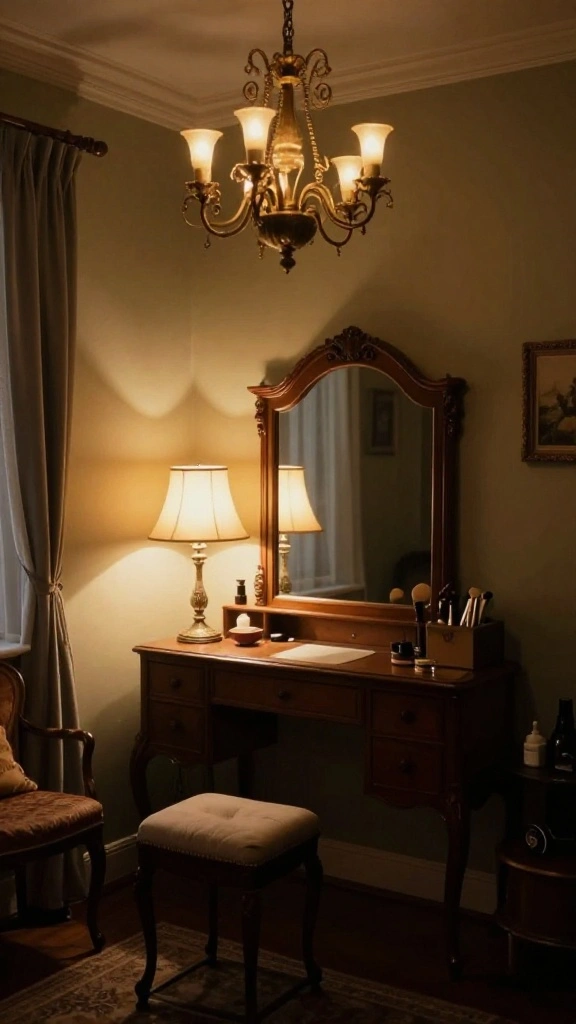 Lighting is essential in setting the right mood, and vintage fixtures can add significant charm to your dressing room. Consider a stunning chandelier or a vintage lamp on your vanity, creating a warm and inviting glow. The right lighting not only enhances the aesthetic but also contributes to a cozy atmosphere.