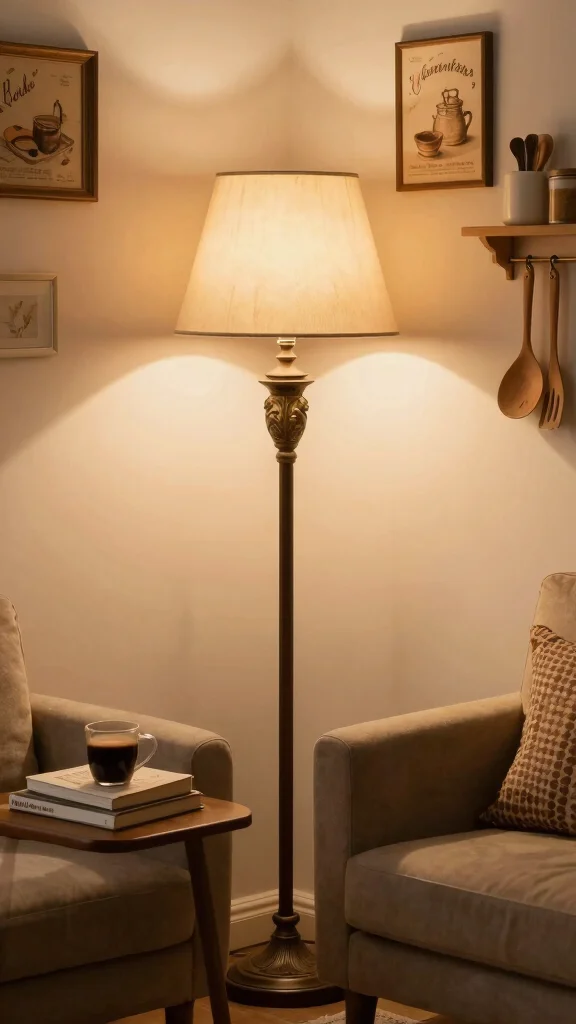 Did you know vintage floor lamps with adjustable arms can cut glare and boost cozy lighting by up to 20%? Swap in warm LEDs, keep ornate bases, and your kitchen becomes a reading nook and dining area in one. Practical, stylish, and perfectly lit for vintage kitchen lighting.