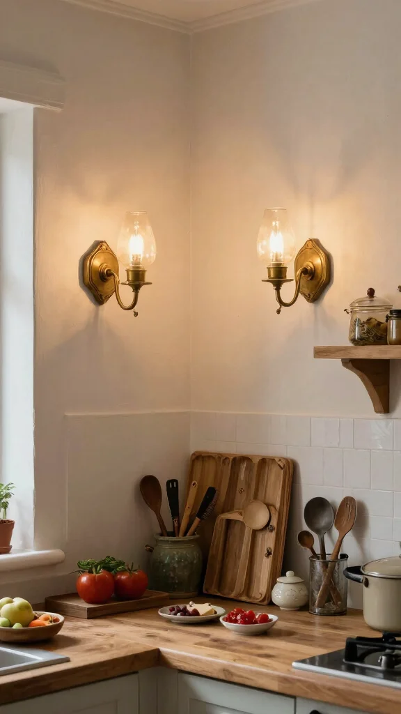 Wall sconces are a delightful way to layer lighting in your kitchen while adding vintage charm. Strategically placed, these fixtures can highlight artwork or illuminate functional areas like countertops, creating a warm and inviting atmosphere. Opt for sconces made from aged metals like brass or copper for an authentic antique look that complements your decor.