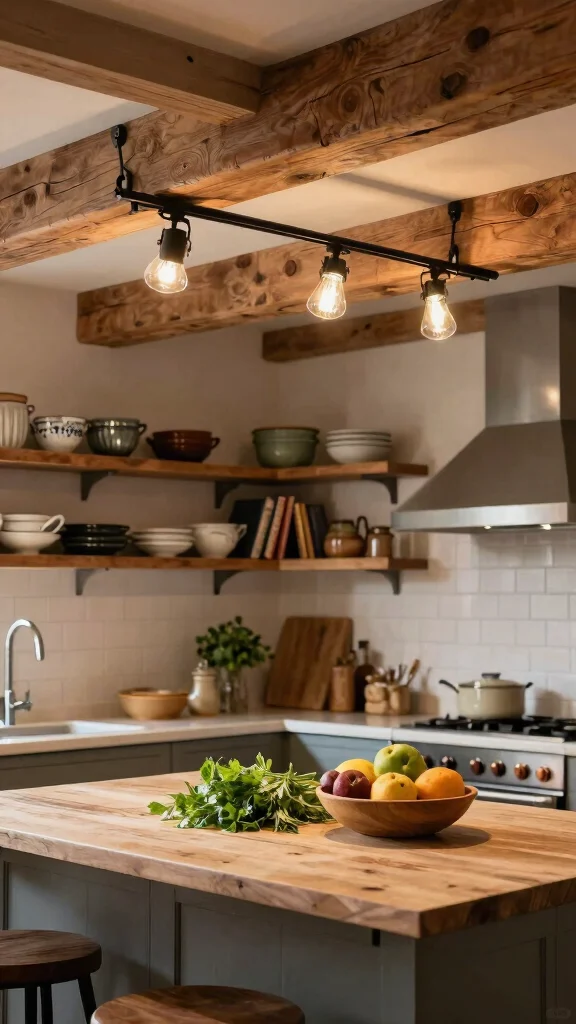 Layer lighting by pairing decorative pendant lights over an island with subtle ceiling mounts and under-cabinet task lighting. Aim for a warm color temperature around 2700–3000K to keep the space cozy, a hallmark of vintage kitchen lighting.