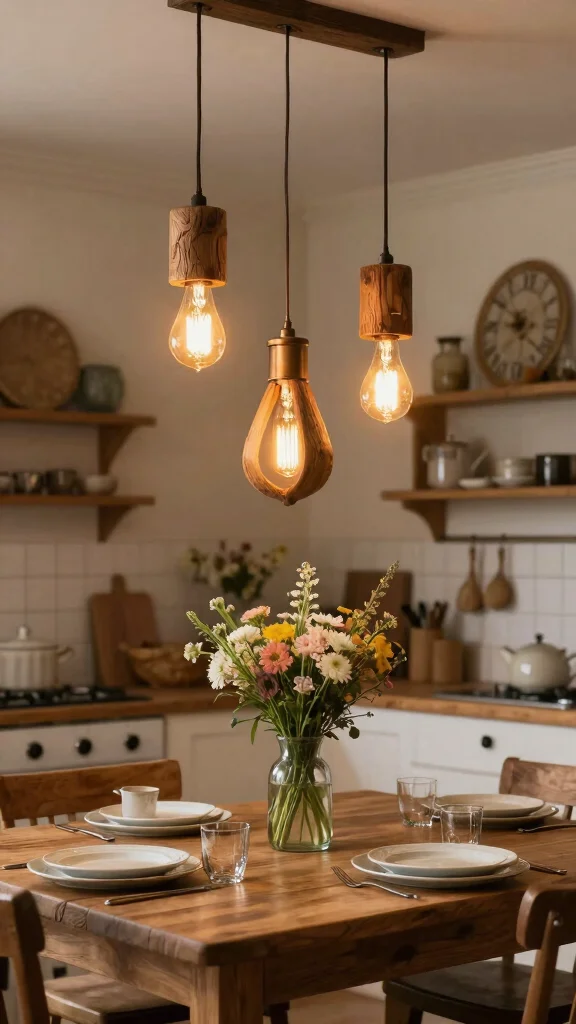 Repurposed lighting not only adds character to your kitchen but also embraces sustainability and creativity.
