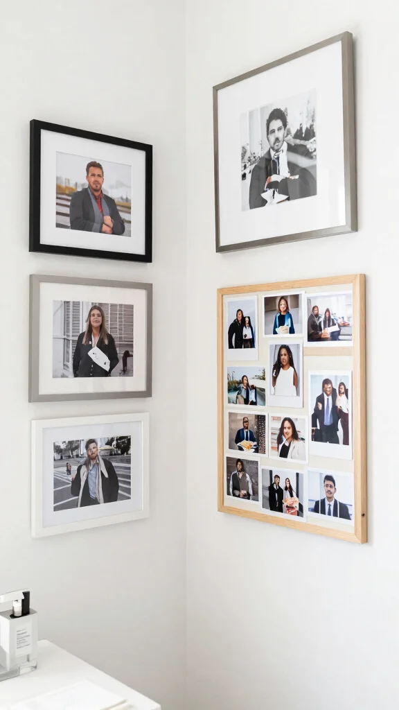 – Use a variety of sizes and frame styles for dynamic appeal.