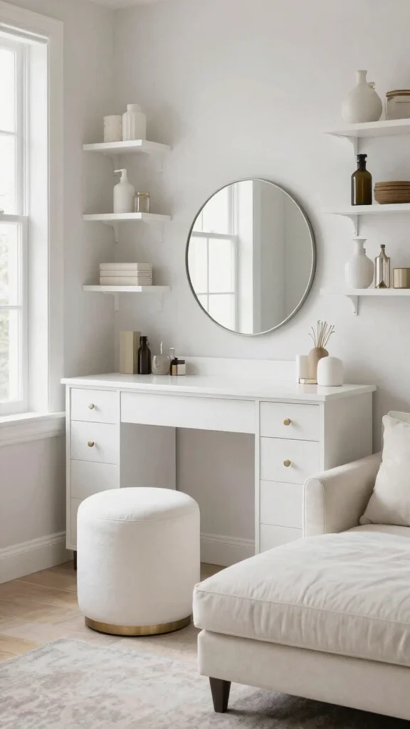 Incorporating white furniture accents into your dressing room can elevate both its functionality and style. A chic white vanity or a plush ottoman can serve as both a practical seating option and a stunning focal point. These pieces bring a sense of airiness, creating a serene environment.