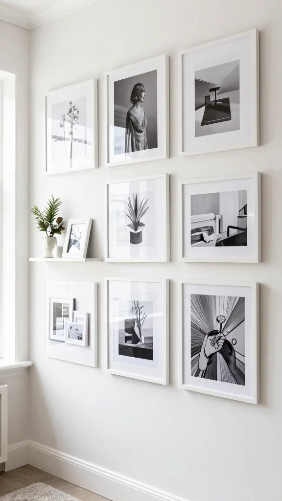 Add personal touches with elegant wall art that complements the white theme and enhances the room’s overall aesthetic.